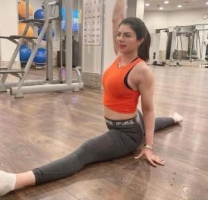 ومن الناحية الجمالية اعتمدت على وضع المكياج بلمسات البسيطة وترك شعرها منسدلا على كتافيها.
